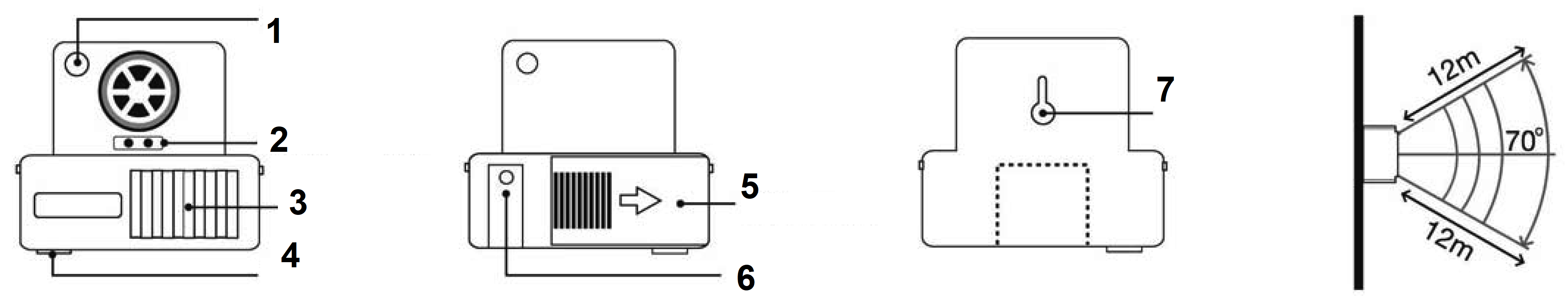 Той може да се захранва от контакт или с 2 x 9V алкални батерии и се поставя с предната част към площта, на която искате да действа.
